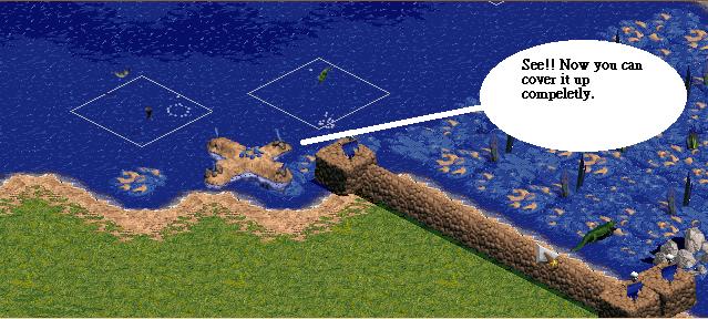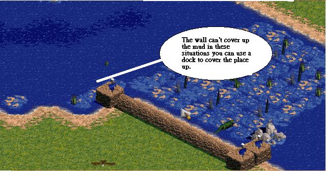 Sometimes when you wall in, which I never, you can't cover up the mud on the side of th shore, at these times you can either build walls on your enemies side or use the dock trick. First you use walls to cover up most of the map, then you build a dock on the mud at the side of the shore to block the enemy. Here are some screenshots to show you how to do it: